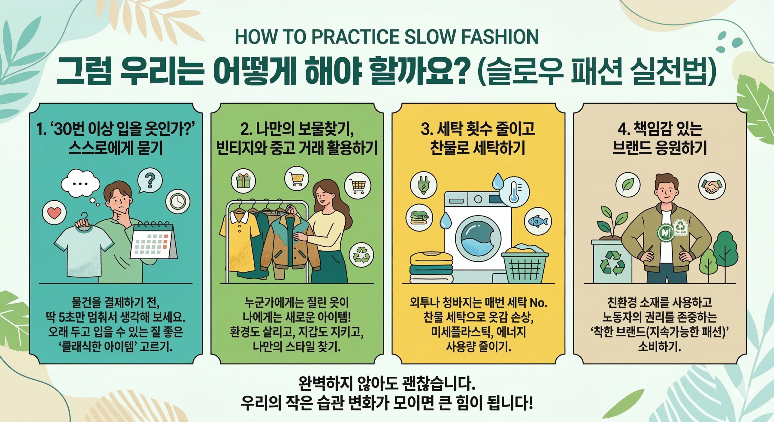 💡 3. 그럼 우리는 어떻게 해야 할까요? (슬로우 패션 실천법)